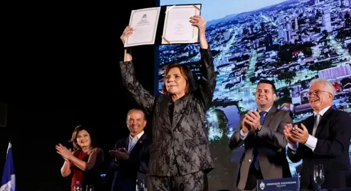 Rejane Gambin (Novo) tomou posse como prefeita de Joinville em 2 de abril de 2026, tornando-se a primeira mulher no cargo