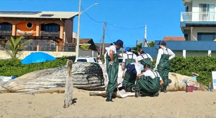 Animal foi localizado no litoral catarinense e caso mobilizou equipes ambientais que trabalham para identificar as causas da morte. Baleia-jubarte é